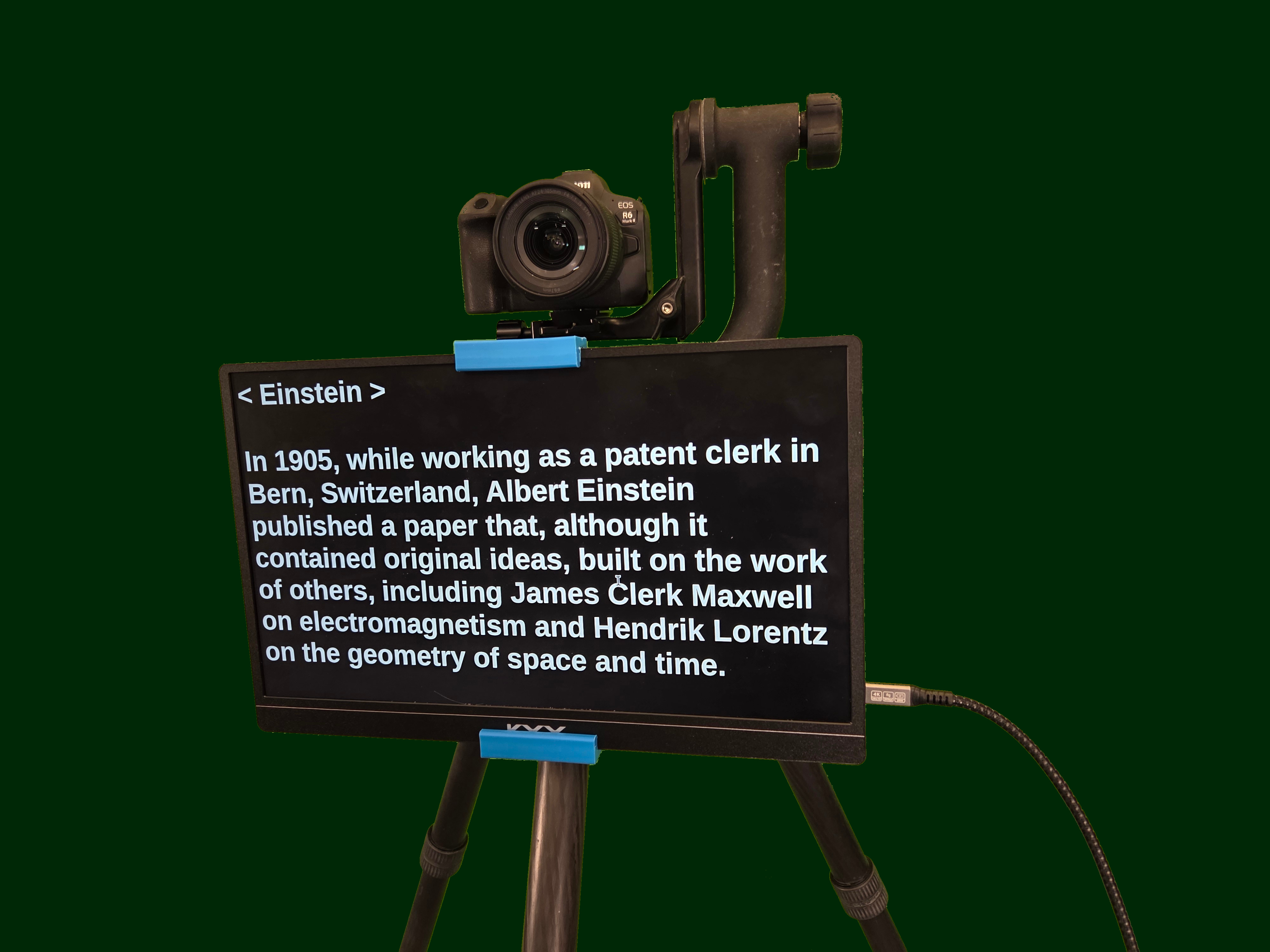 - Because of the need for a Bluetooth keyboard to control the display scroll rate, the on-camera person must normally be framed tightly so his/her hands don't show. An alternative is to have an assistant control the teleprompter display, or use the supported game controller (see game controller section). Update 2026: You may also use the Ikegol foot pedals in the most recent versions of this program.